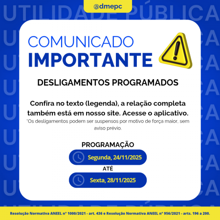 Desligamentos Programados - 24/11/2025 a 28/11/2025