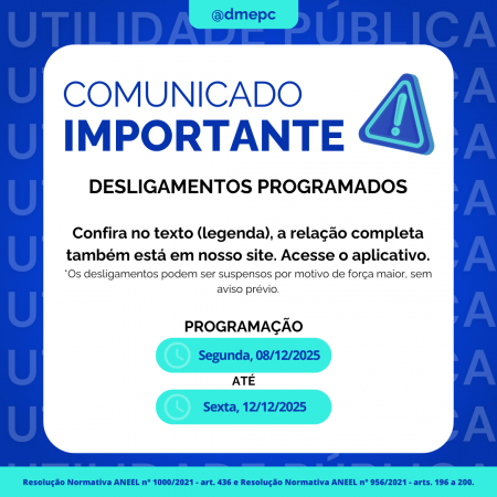 Desligamentos Programados - 08/12/2025 a 12/12/2025